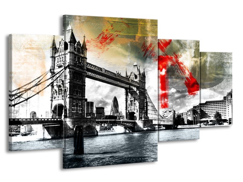 Glasschilderij Engeland, London | Zwart, Wit, Rood | 160x90cm 4Luik