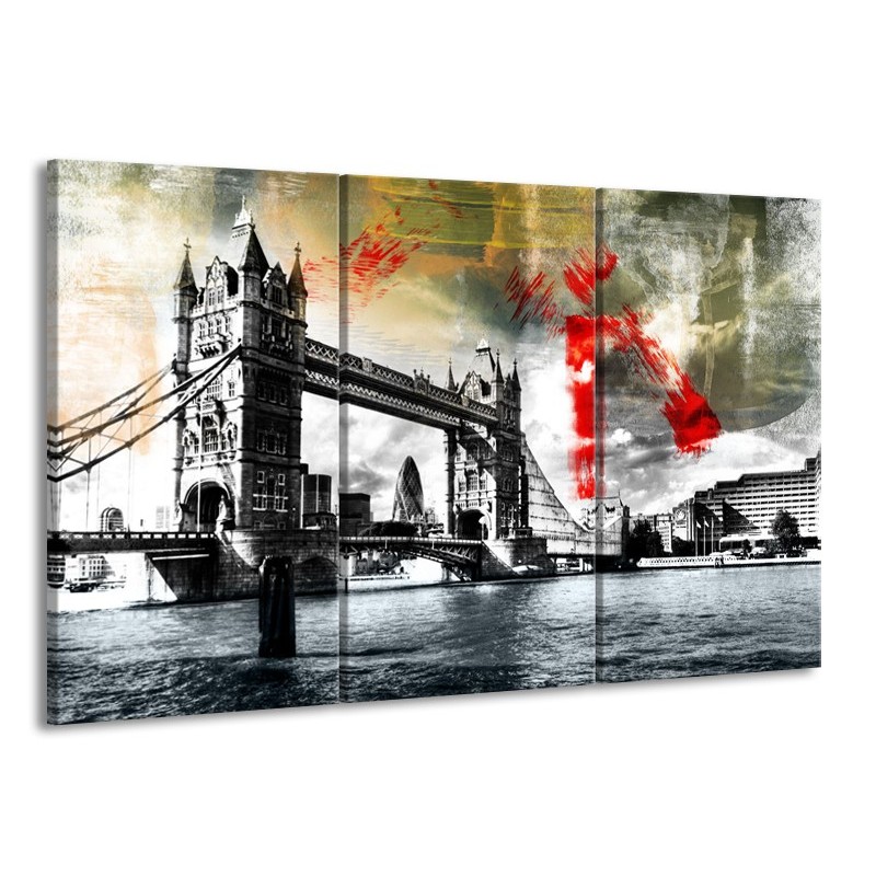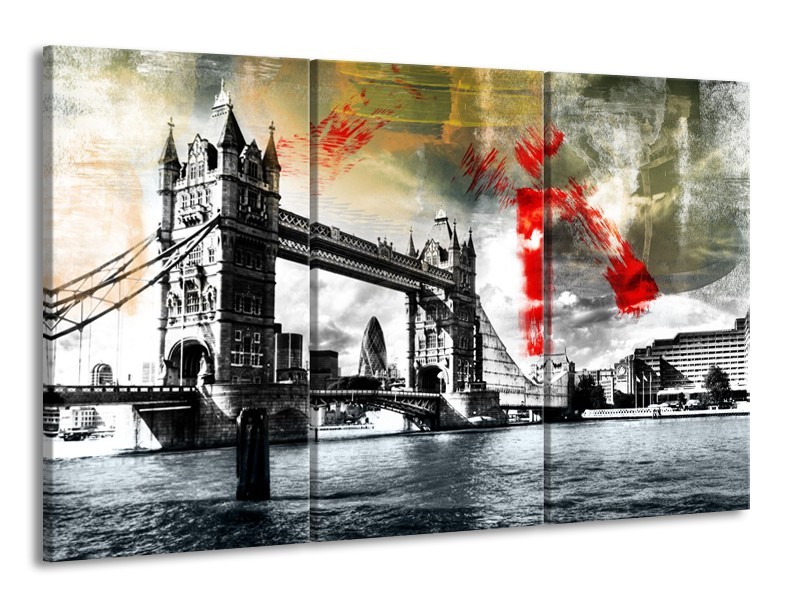 Glasschilderij Engeland, London | Zwart, Wit, Rood | 165x100cm 3Luik