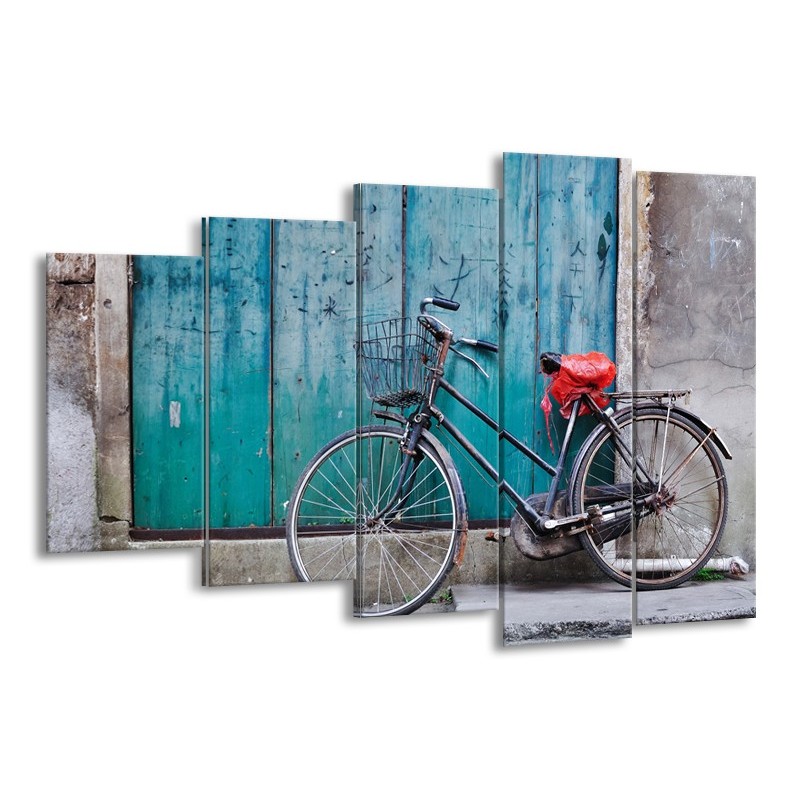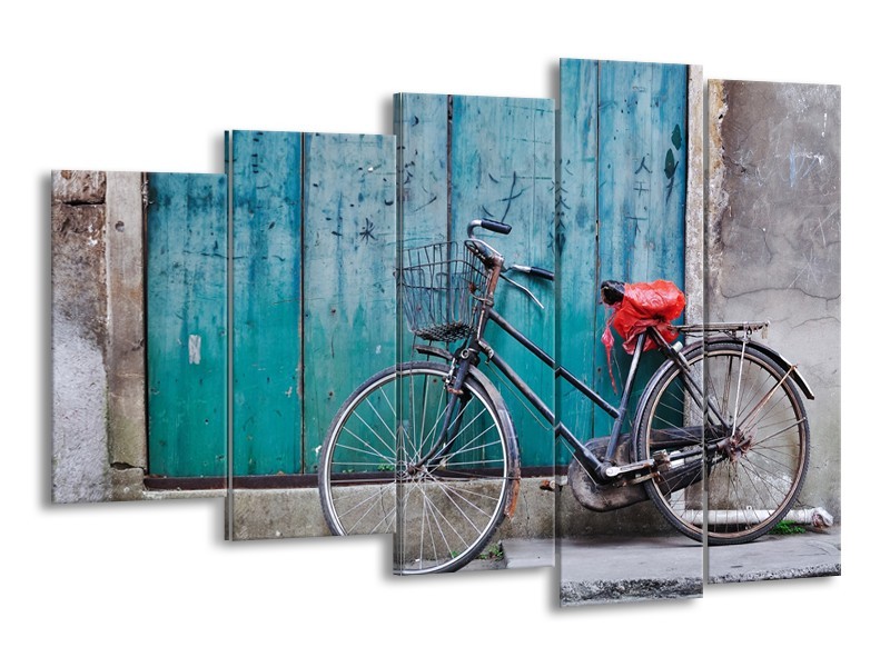 Glasschilderij Fiets | Blauw, Groen, Grijs | 150x100cm 5Luik