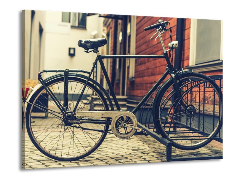 Glasschilderij Fiets | Bruin, Grijs, Crème | 100x70cm 1Luik