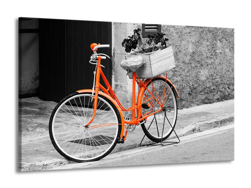 Glasschilderij Fiets | Grijs, Oranje, Zwart | 140x90cm 1Luik