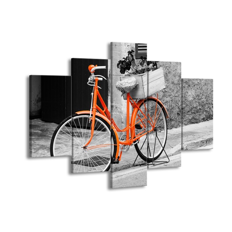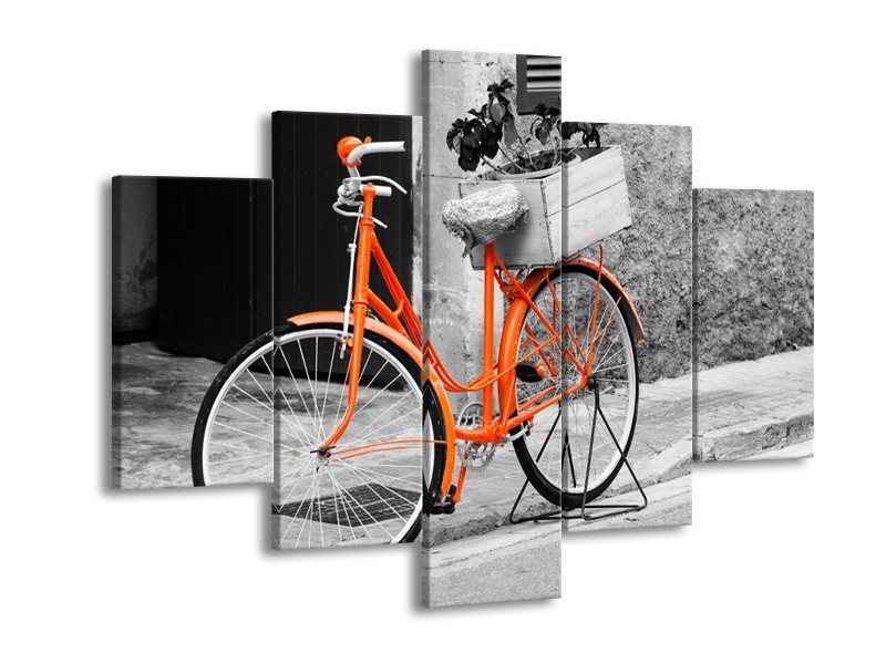 Glasschilderij Fiets | Grijs, Oranje, Zwart | 150x105cm 5Luik