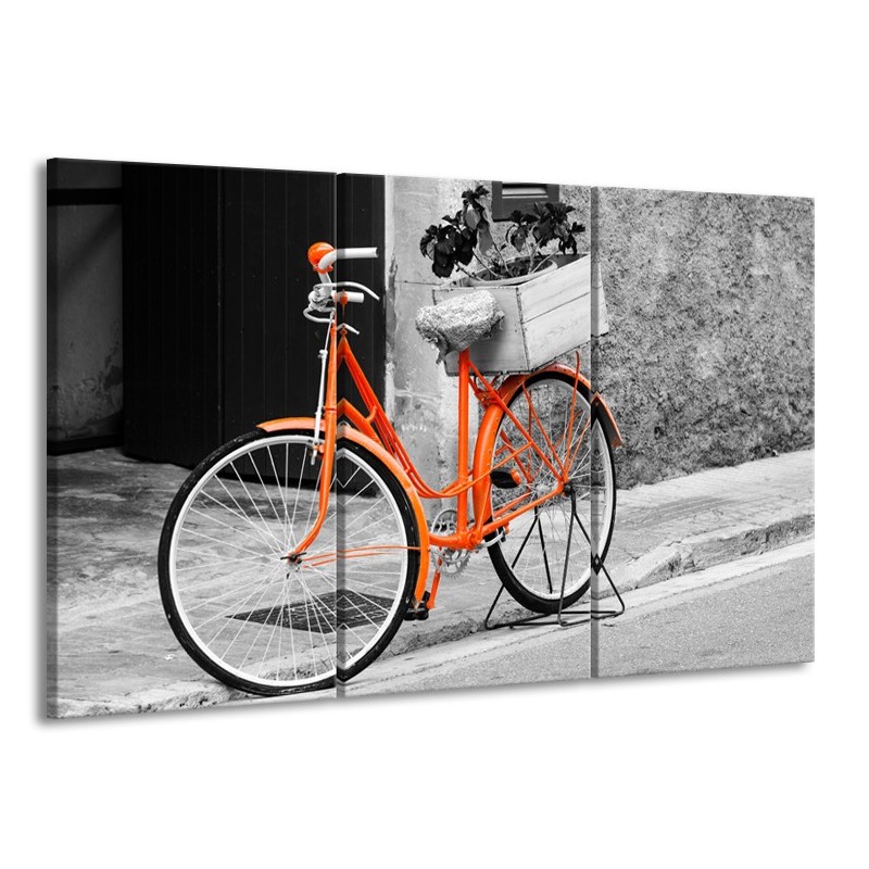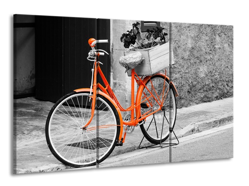 Glasschilderij Fiets | Grijs, Oranje, Zwart | 165x100cm 3Luik