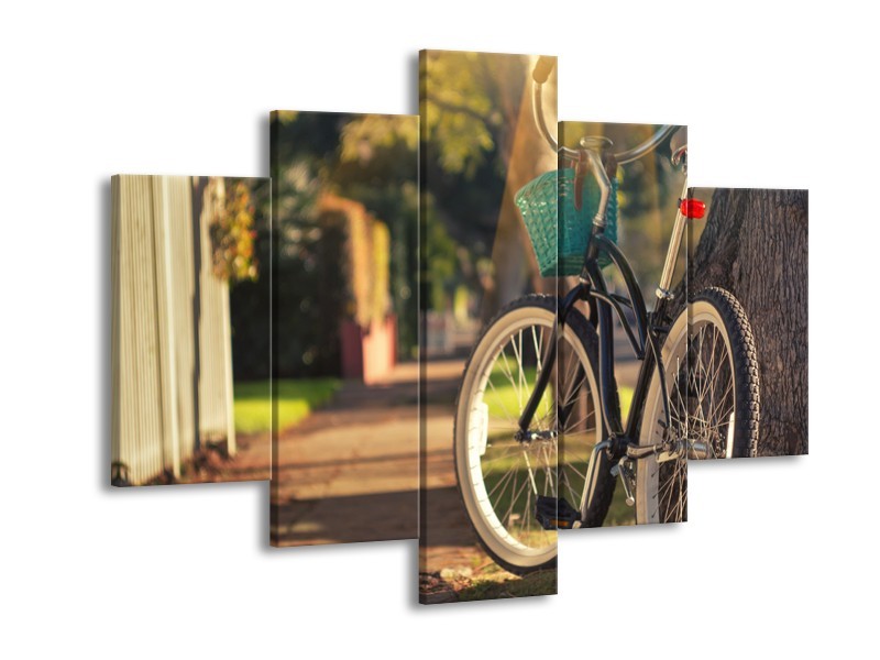 Glasschilderij Fiets, Natuur | Grijs, Geel, Bruin | 150x105cm 5Luik