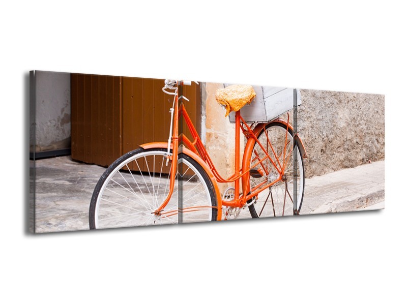 Glasschilderij Fiets | Oranje, Geel, Bruin | 150x50cm 3Luik