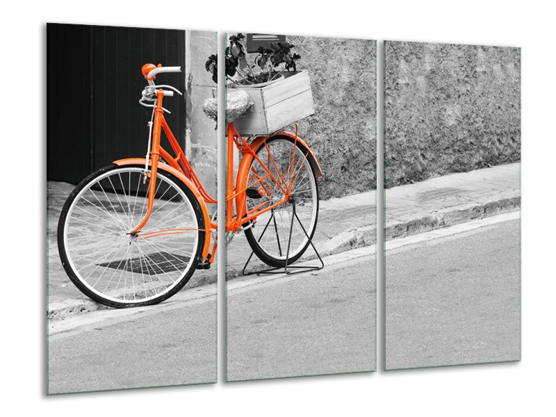 Glasschilderij Fiets | Oranje, Zwart, Wit | 120x80cm 3Luik