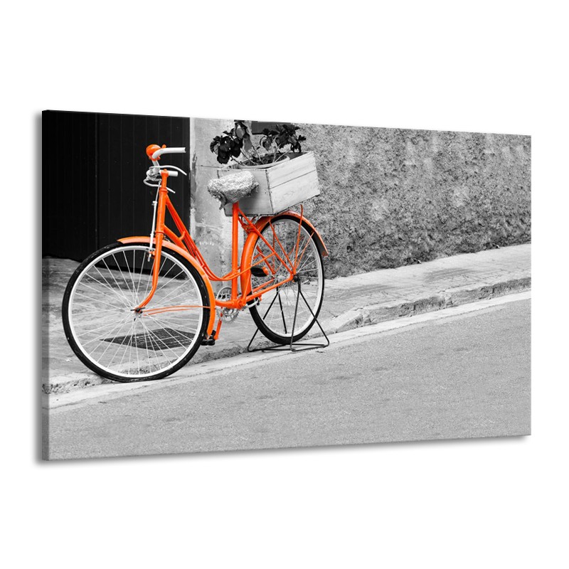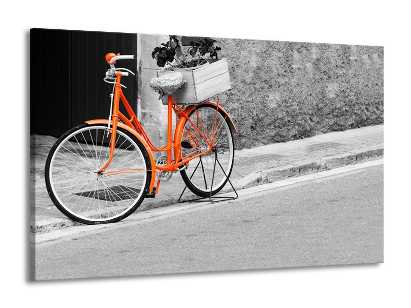 Glasschilderij Fiets | Oranje, Zwart, Wit | 140x90cm 1Luik