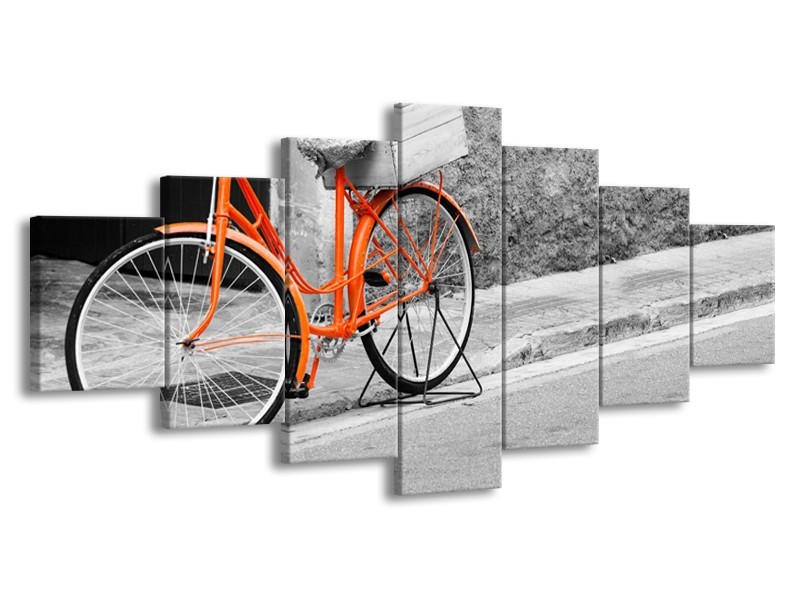 Glasschilderij Fiets | Oranje, Zwart, Wit | 210x100cm 7Luik