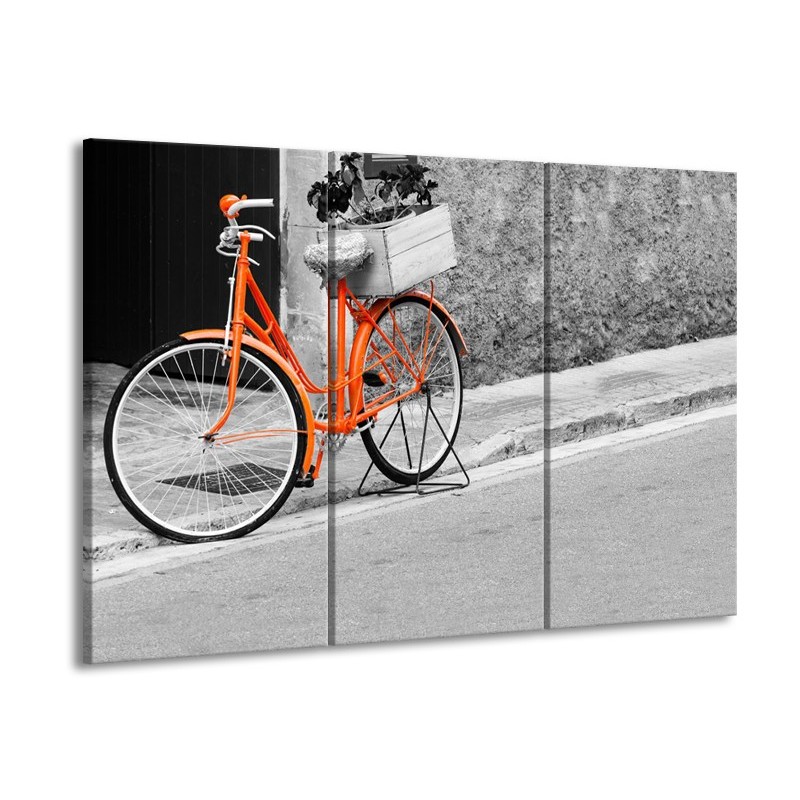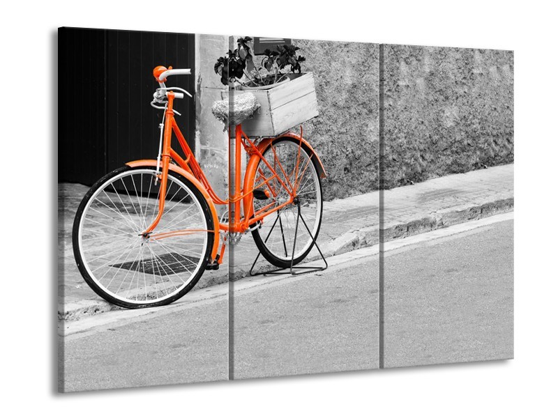 Glasschilderij Fiets | Oranje, Zwart, Wit | 60x90cm 3Luik