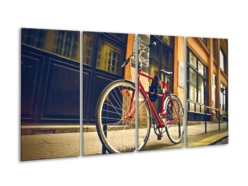 Glasschilderij Fiets, Straat | Bruin, Rood, Geel | 160x80cm 4Luik