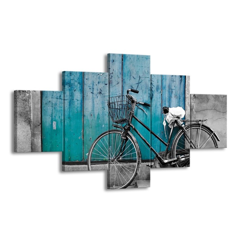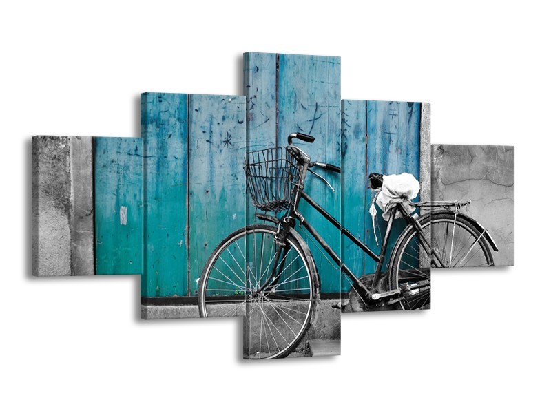 Glasschilderij Fiets | Turquoise, Grijs | 125x70cm 5Luik