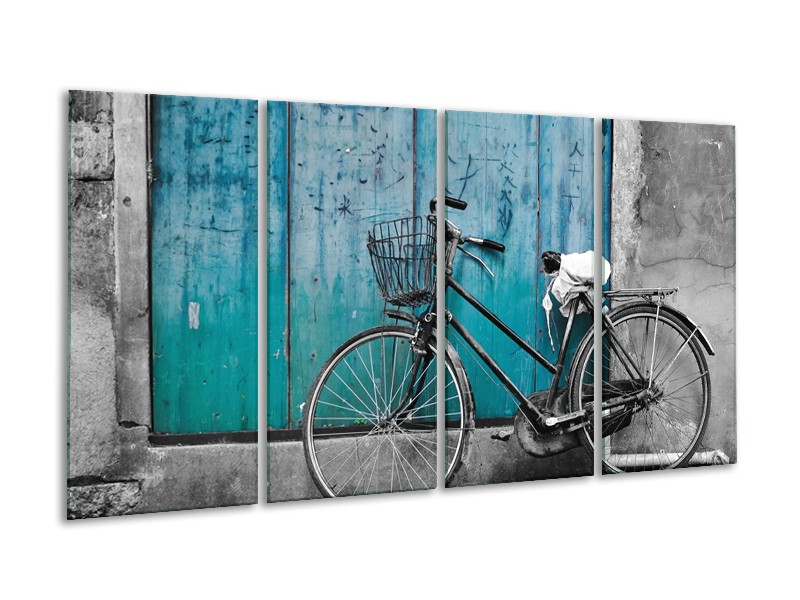 Glasschilderij Fiets | Turquoise, Grijs | 160x80cm 4Luik