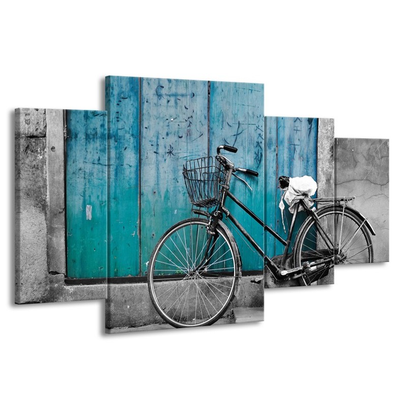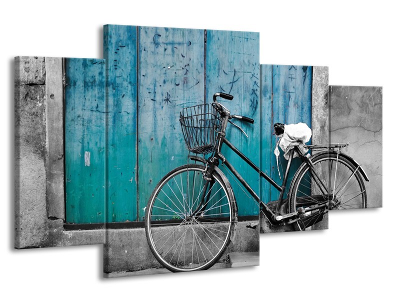 Glasschilderij Fiets | Turquoise, Grijs | 160x90cm 4Luik