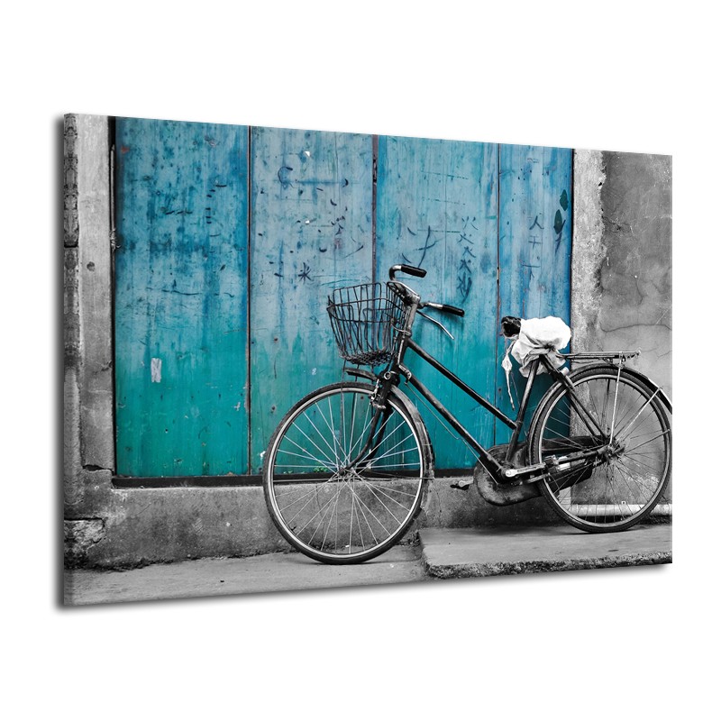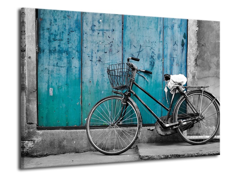 Glasschilderij Fiets | Turquoise, Grijs | 70x50cm 1Luik