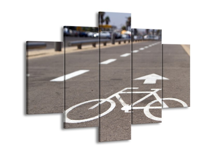 Glasschilderij Fietspad | Grijs, Wit | 150x105cm 5Luik