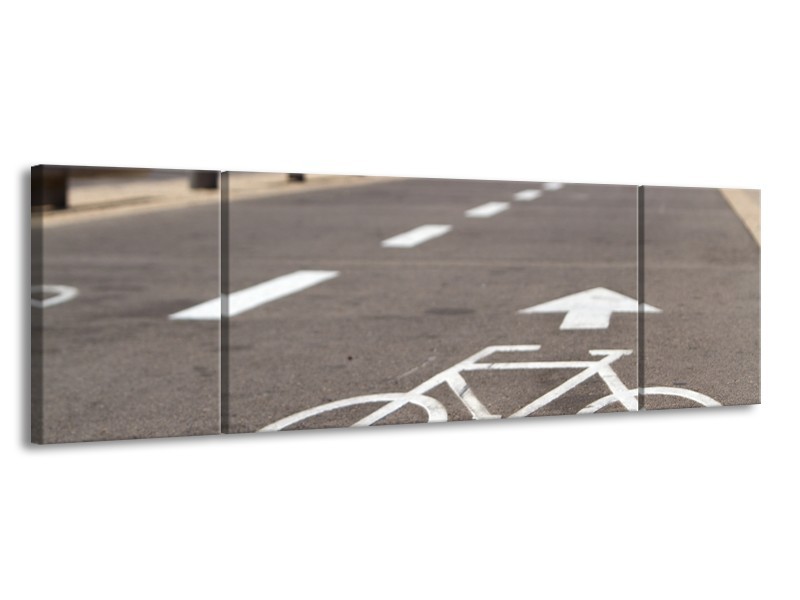 Glasschilderij Fietspad | Grijs, Wit | 170x50cm 3Luik