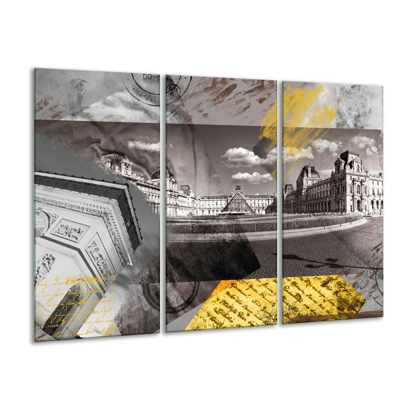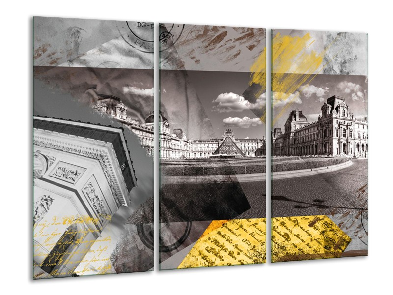Glasschilderij Frankrijk, Louvre | Grijs, Crème , Geel | 120x80cm 3Luik