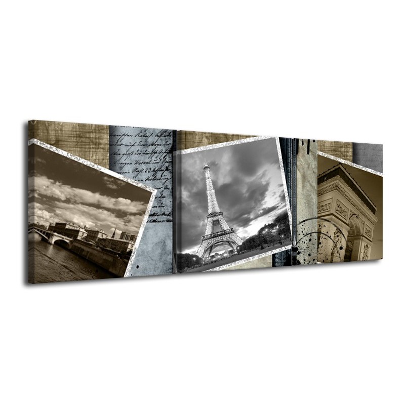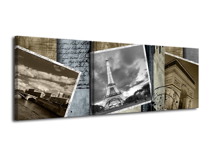 Glasschilderij Frankrijk, Parijs | Grijs, Crème , Bruin | 120x40cm 3Luik