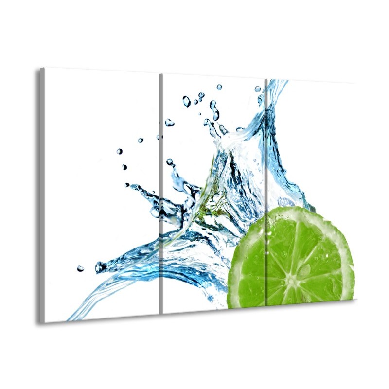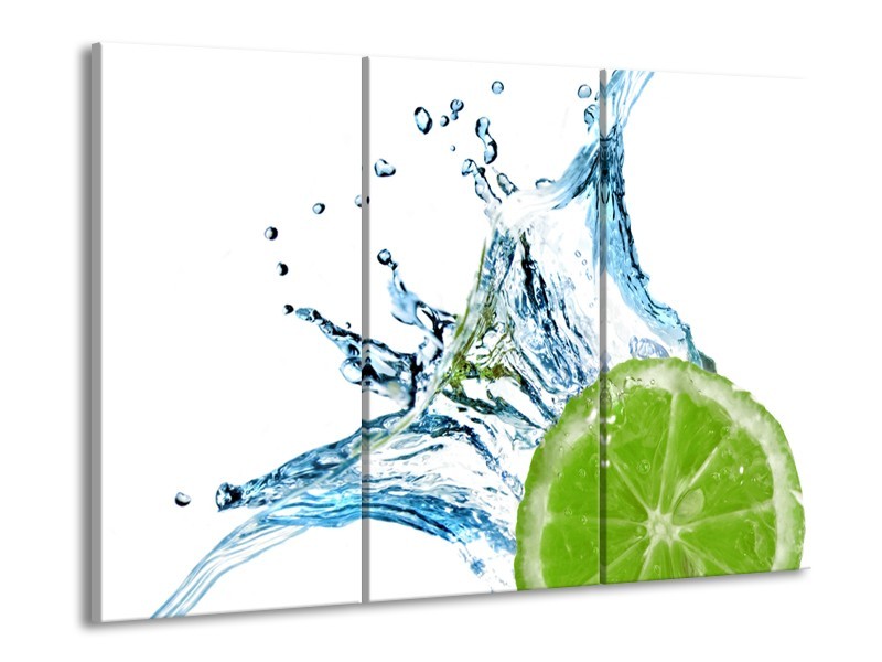 Glasschilderij Fruit, Keuken | Groen, Blauw, Wit | 60x90cm 3Luik