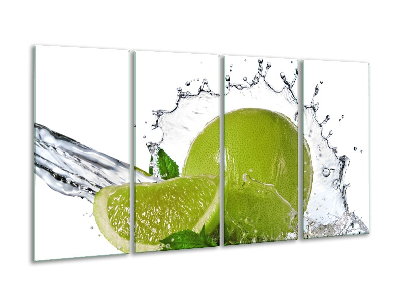 Glasschilderij Fruit, Keuken | Groen, Wit, Zilver | 160x80cm 4Luik