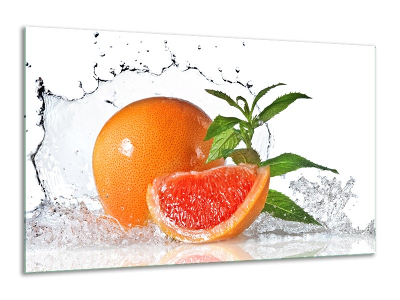 Glasschilderij Fruit, Keuken | Oranje, Wit, Groen | 120x70cm 1Luik