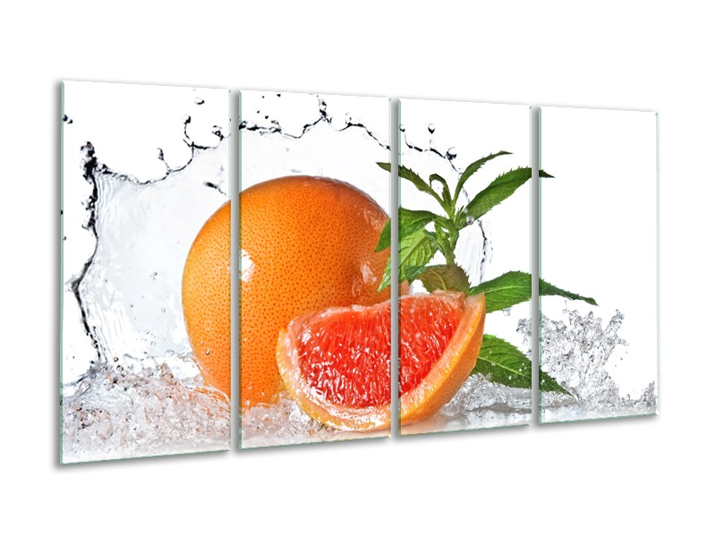 Glasschilderij Fruit, Keuken | Oranje, Wit, Groen | 160x80cm 4Luik