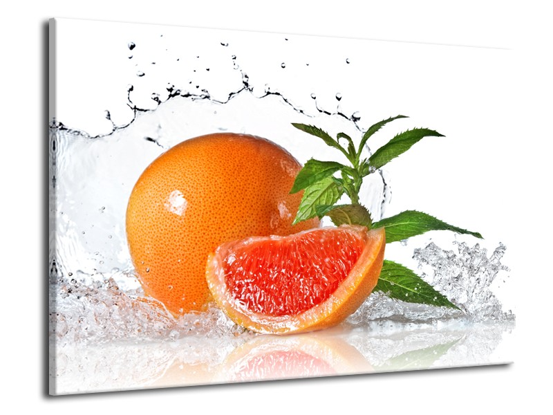 Glasschilderij Fruit, Keuken | Oranje, Wit, Groen | 70x50cm 1Luik