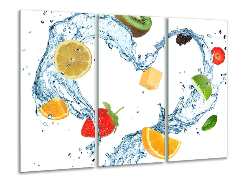Glasschilderij Fruit, Keuken | Wit, Geel, Blauw | 120x80cm 3Luik