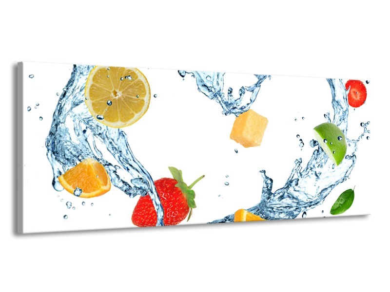 Glasschilderij Fruit, Keuken | Wit, Geel, Blauw | 145x58cm 1Luik