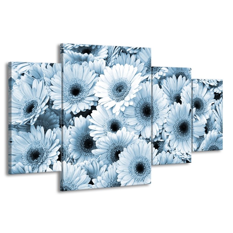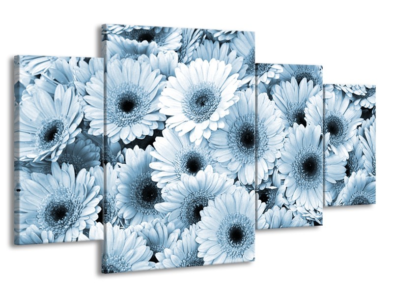 Glasschilderij Gerbera, Bloemen | Blauw, Grijs | 160x90cm 4Luik