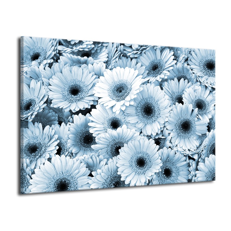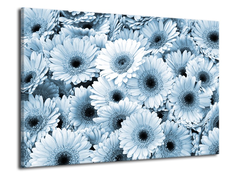 Glasschilderij Gerbera, Bloemen | Blauw, Grijs | 70x50cm 1Luik