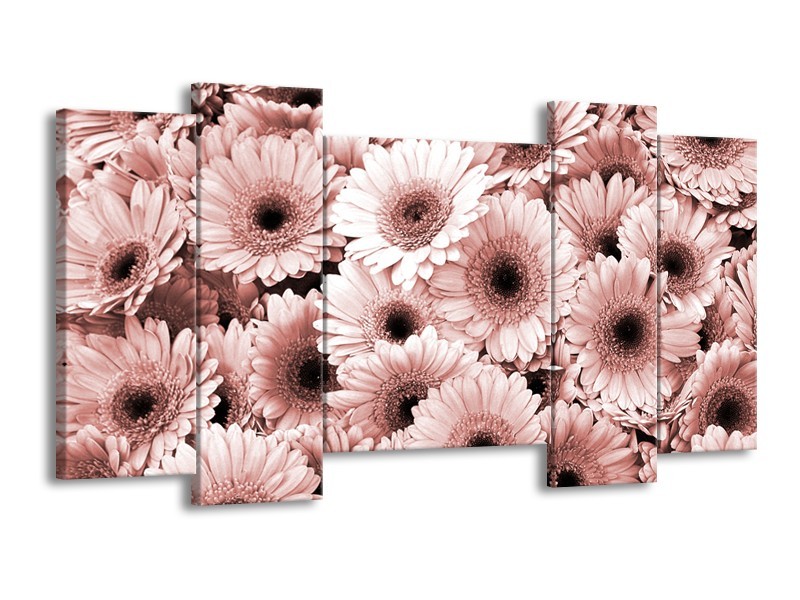 Glasschilderij Gerbera, Bloemen | Bruin, Rood | 120x65cm 5Luik