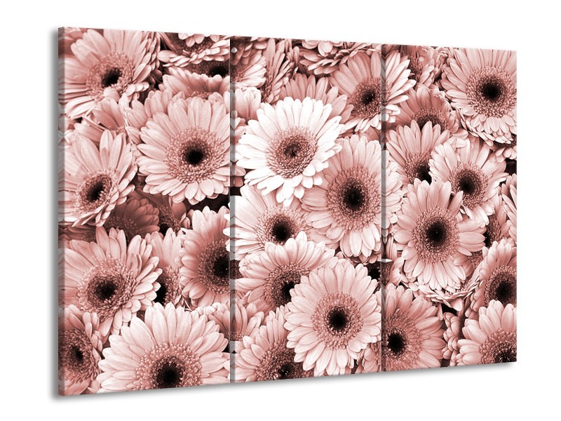 Glasschilderij Gerbera, Bloemen | Bruin, Rood | 60x90cm 3Luik