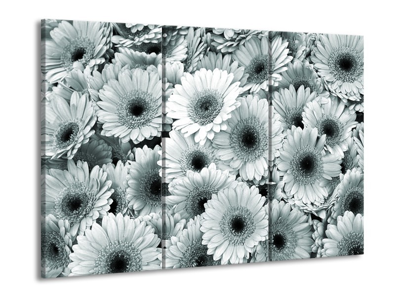 Glasschilderij Gerbera, Bloemen | Grijs, Groen | 60x90cm 3Luik