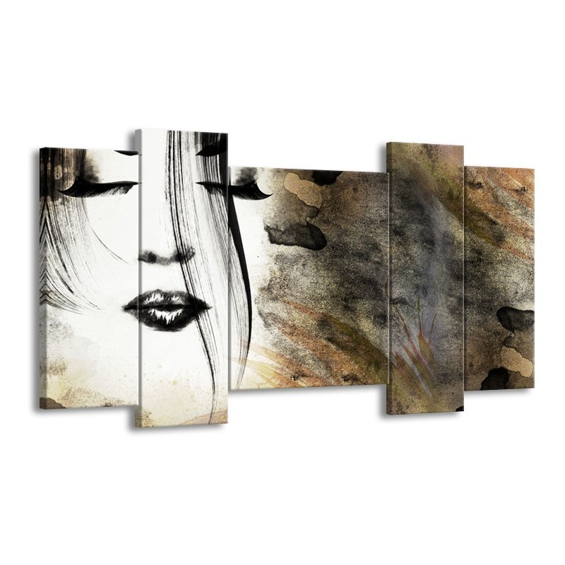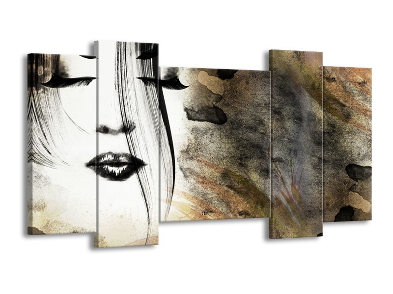 Glasschilderij Gezicht, Vrouw | Zwart, Bruin, Wit | 120x65cm 5Luik