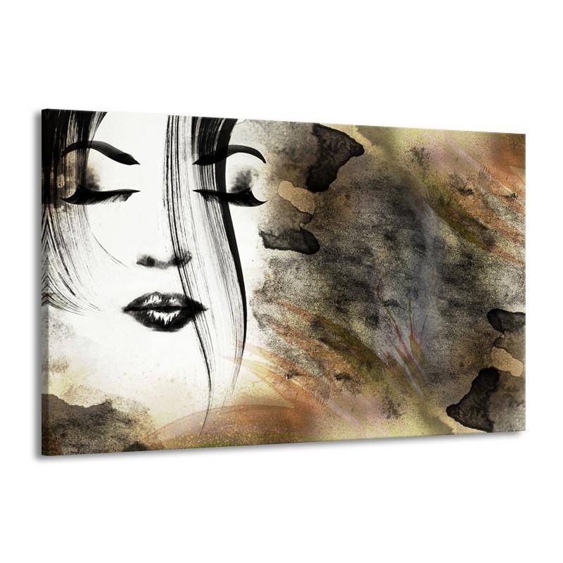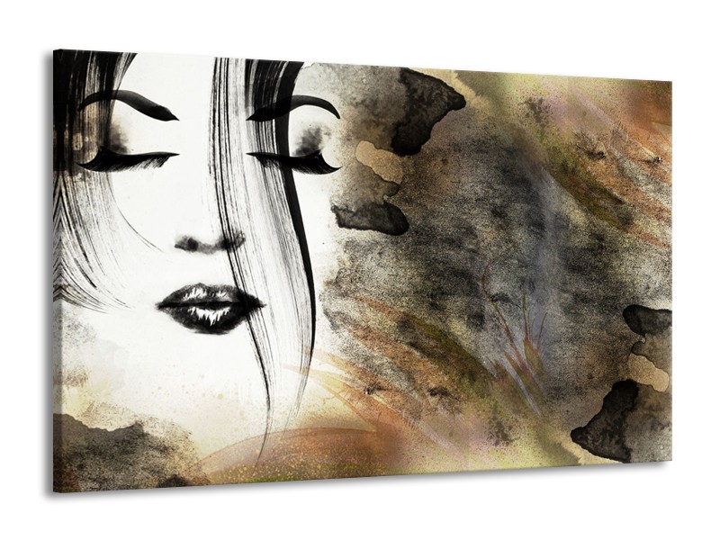 Glasschilderij Gezicht, Vrouw | Zwart, Bruin, Wit | 140x90cm 1Luik