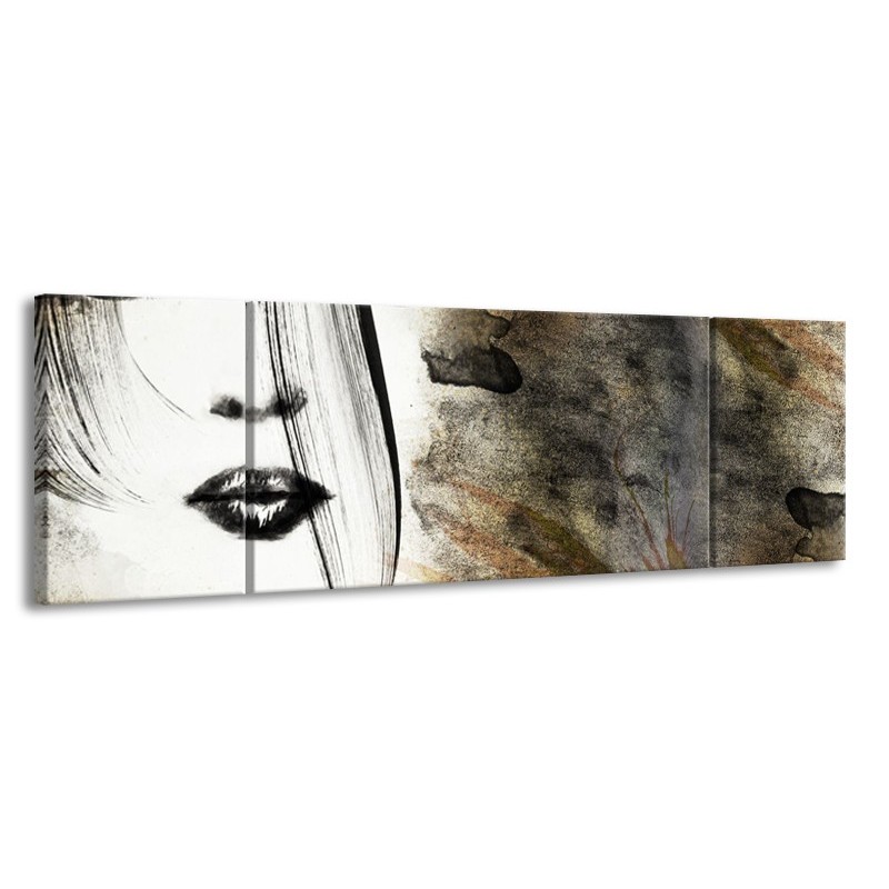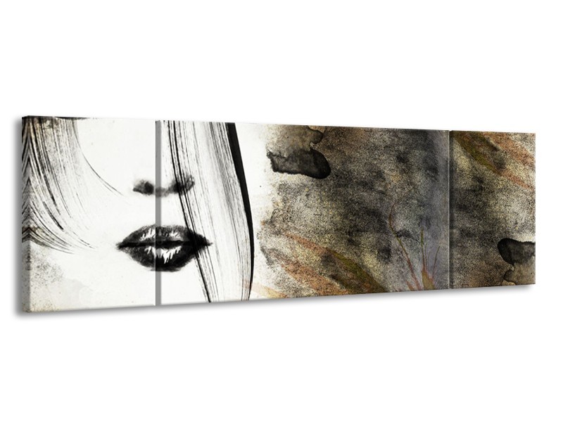 Glasschilderij Gezicht, Vrouw | Zwart, Bruin, Wit | 170x50cm 3Luik