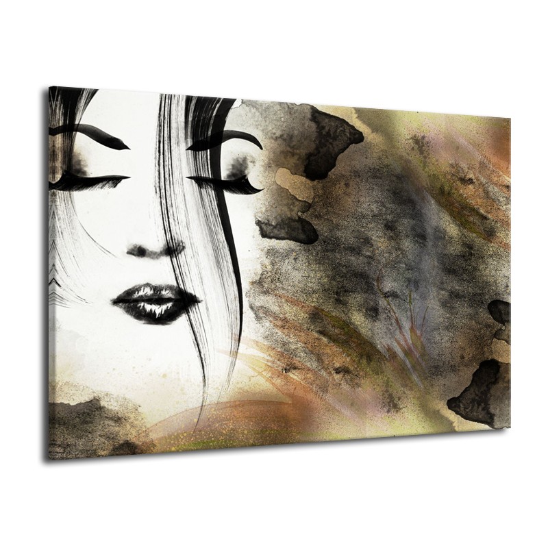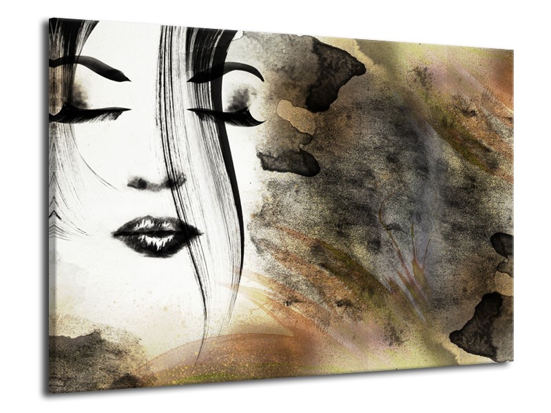 Glasschilderij Gezicht, Vrouw | Zwart, Bruin, Wit | 70x50cm 1Luik