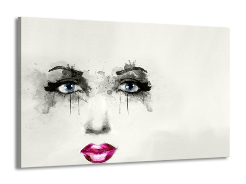 Glasschilderij Gezicht, Vrouw | Zwart, Roze, Crème | 140x90cm 1Luik