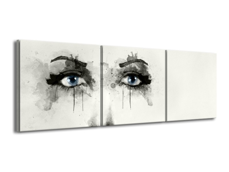 Glasschilderij Gezicht, Vrouw | Zwart, Roze, Crème | 150x50cm 3Luik