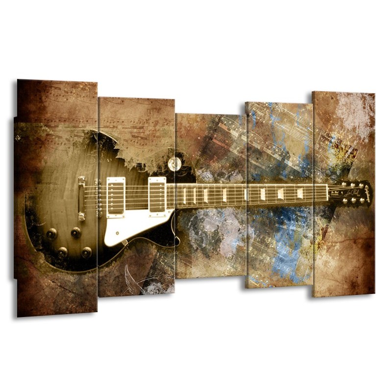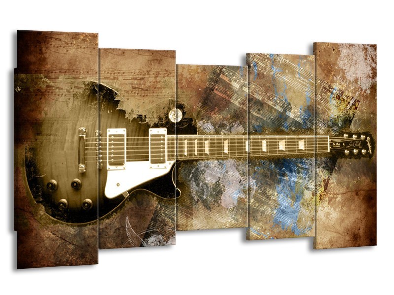 Glasschilderij Gitaar, Muziek | Bruin | 150x80cm 5Luik