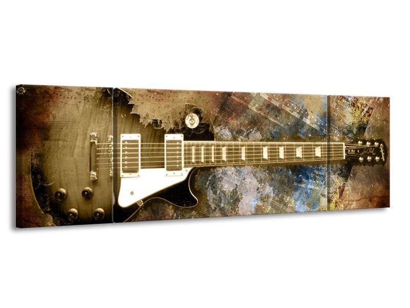 Glasschilderij Gitaar, Muziek | Bruin | 170x50cm 3Luik