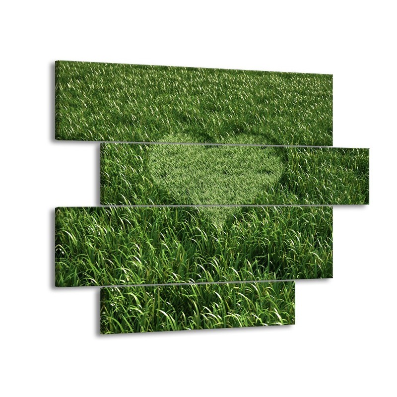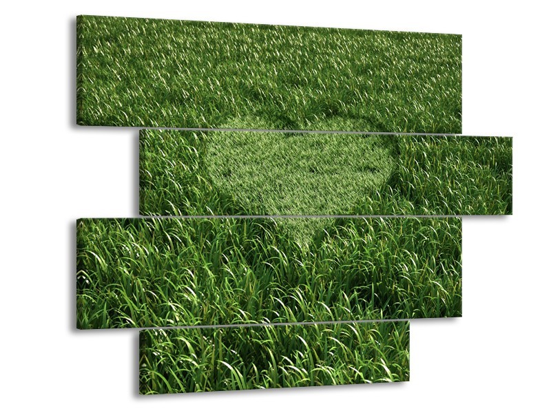 Glasschilderij Gras, Hart | Groen | 115x85cm 4Luik