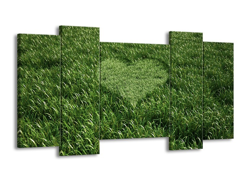 Glasschilderij Gras, Hart | Groen | 120x65cm 5Luik