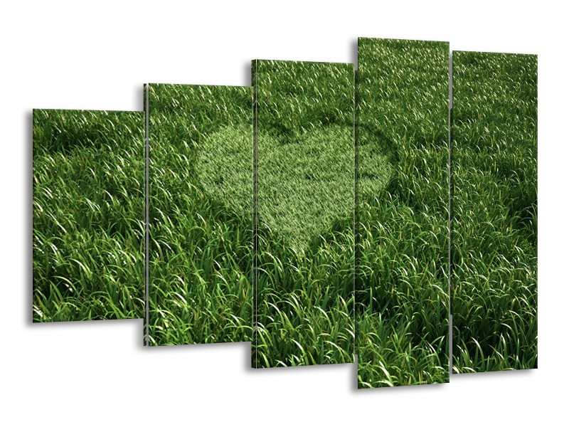 Glasschilderij Gras, Hart | Groen | 150x100cm 5Luik