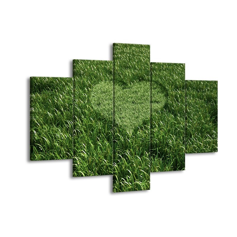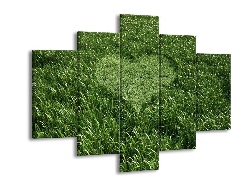 Glasschilderij Gras, Hart | Groen | 150x105cm 5Luik
