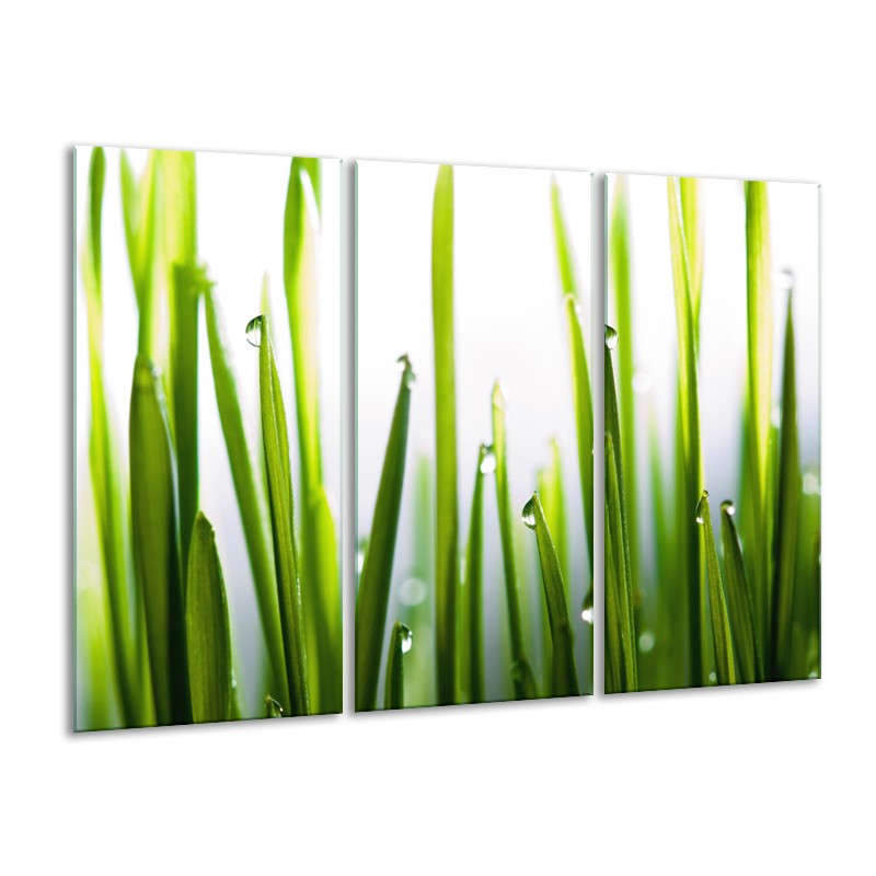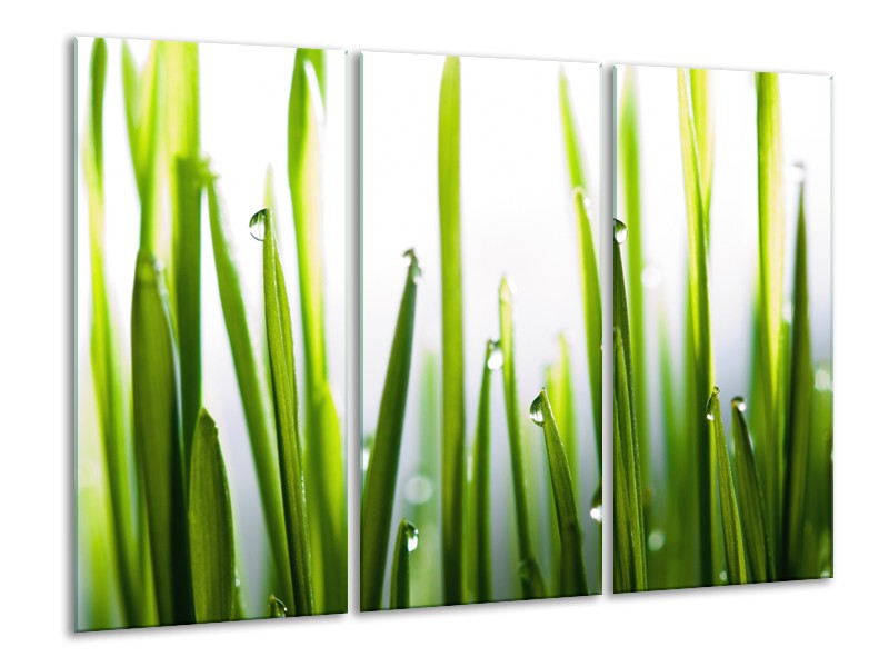 Glasschilderij Gras, Natuur | Groen, Geel, Wit | 120x80cm 3Luik