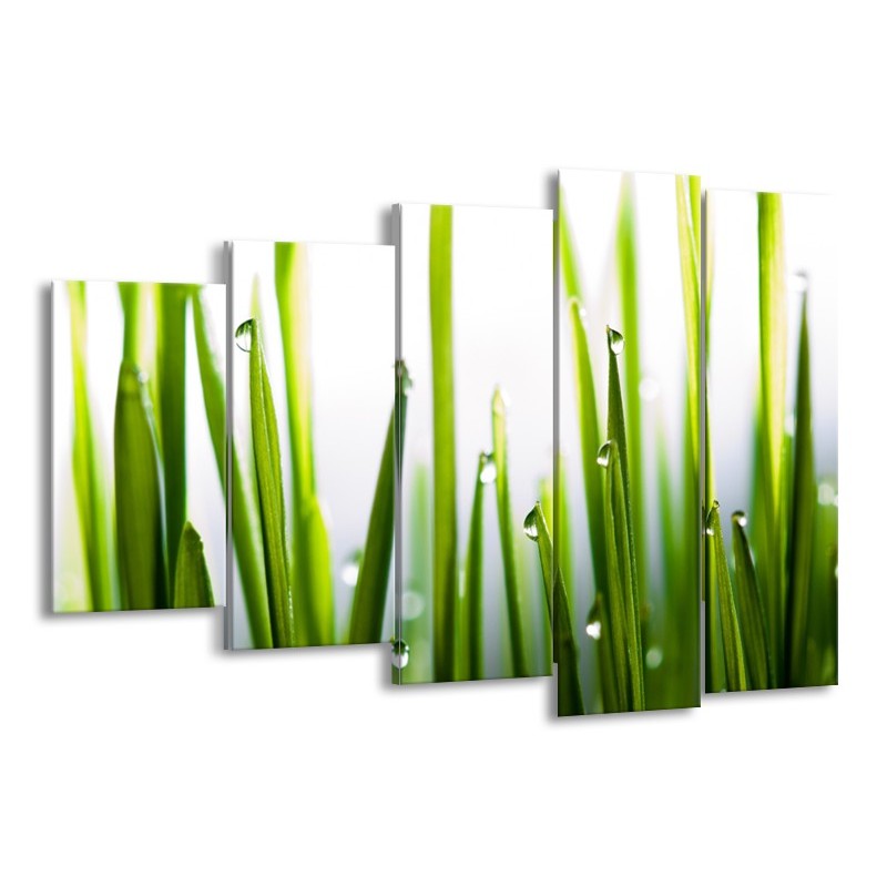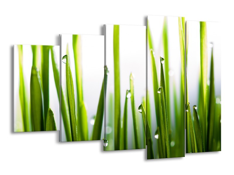 Glasschilderij Gras, Natuur | Groen, Geel, Wit | 150x100cm 5Luik