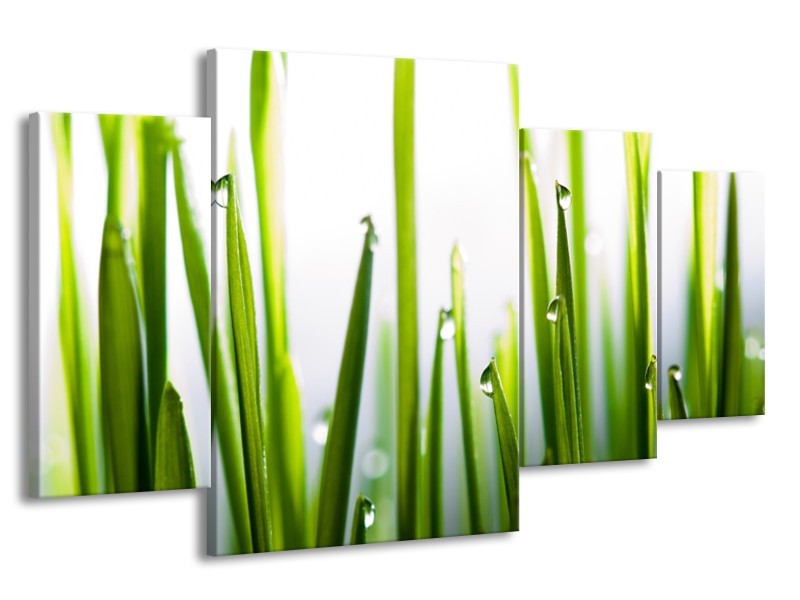 Glasschilderij Gras, Natuur | Groen, Geel, Wit | 160x90cm 4Luik