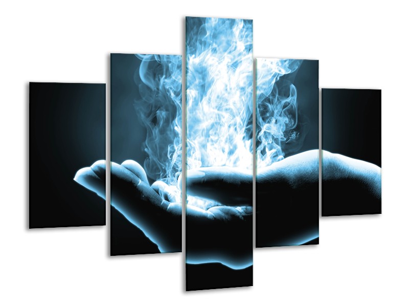 Glasschilderij Hand, Abstract | Blauw, Grijs, Zwart | 100x70cm 5Luik